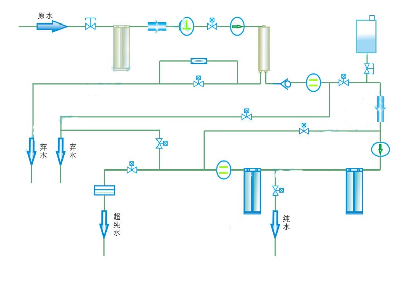 8、具有RO產(chǎn)水超標(biāo)排放保護(hù)功能,以保護(hù)后級純化樹脂不受超標(biāo)水的污染。